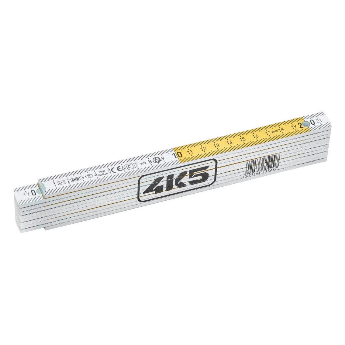4K5 FR2X Duimstok 2 meter met geïntegreerde gradenboog en wit-geel gekleurde maatindeling