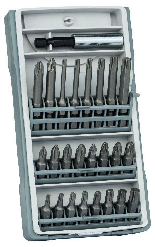 - Veelzijdig: keuze uit vijf opties: schroefboormachine met magnetische bithouder, vergrendelbare bithouder, boorhouder, haaks opzetstuk en excentrisch opzetstuk (niet standaard bijgeleverd)