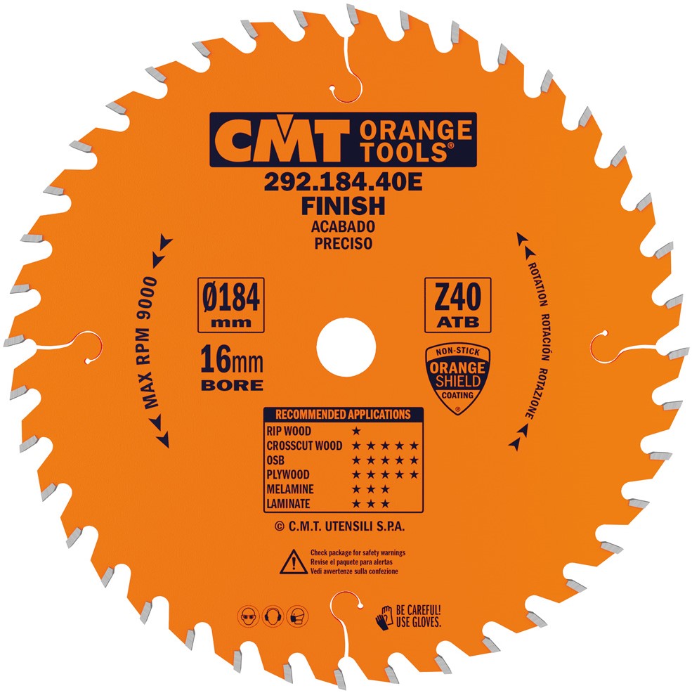 CMT 292.184.40E HM-zaagblad fijne vertanding 184 x 16 x 40T