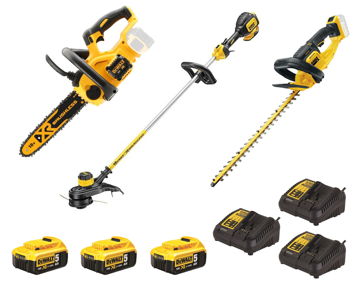DeWalt DCM561P3SET 3-delig DCMHT563P1 heggenschaar - DCM565 kettingzaag - DCMST561P1-QW grastrimmer 18V 3 x 5.0Ah Li-Ion + 3 laders