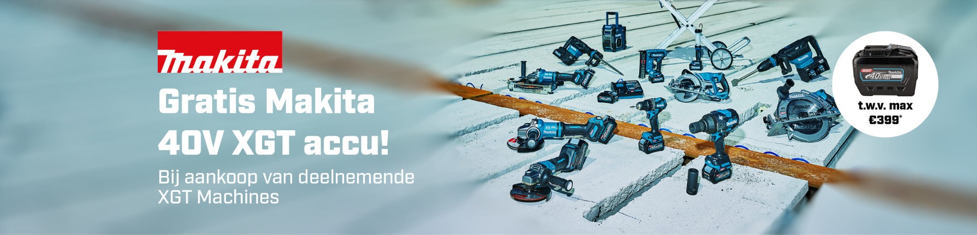 Let op! Naast de Makita 40V actie ontvangt u ook vanaf €999,- (excl. BTW) aan Makita gereedschap en accessoires vanuit Toolnation een gratis 18V 5,0Ah accu. Deze wordt automatisch toegevoegd aan uw winkelwagen. Bekijk deze actie hier.