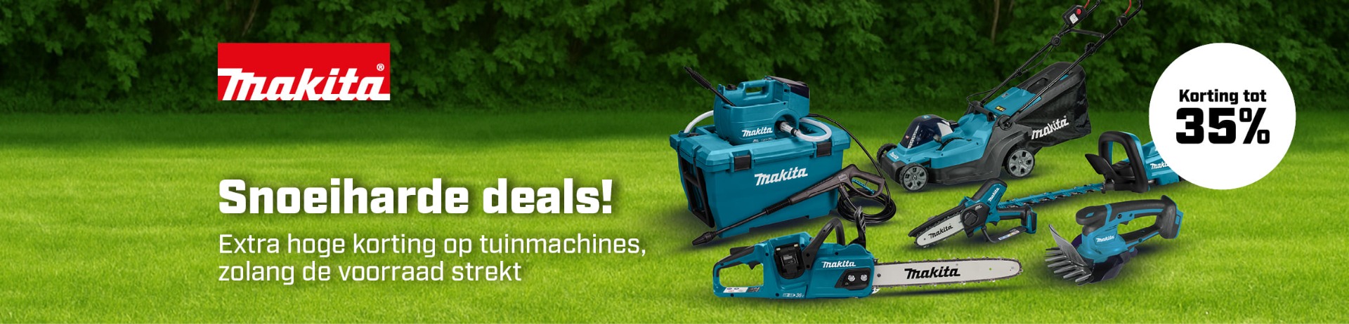 Profiteer van de torenhoge kortingen op Makita tuinmachines, zolang de voorraad strekt.