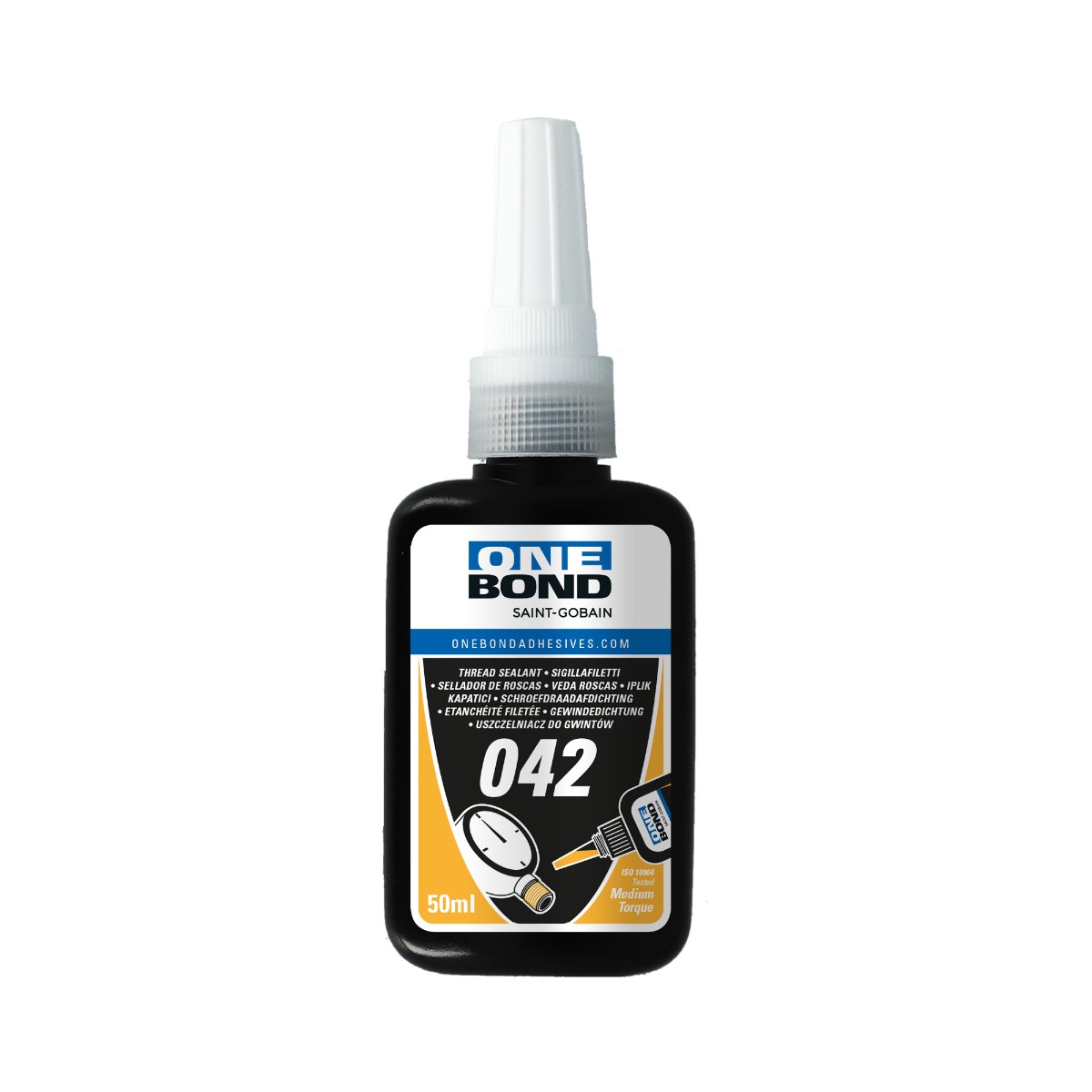 - OneBond 042 is een niet schadelijk schroefdraadafdichtingsmiddel met lage viscositeit en medium treksterkte voor hydraulische en pneumatische schroefdraad, connectoren tot 20mm en kleine pijpen.