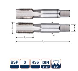 - HSS handtap DIN 5157, gasdraad, set à 2 stuks