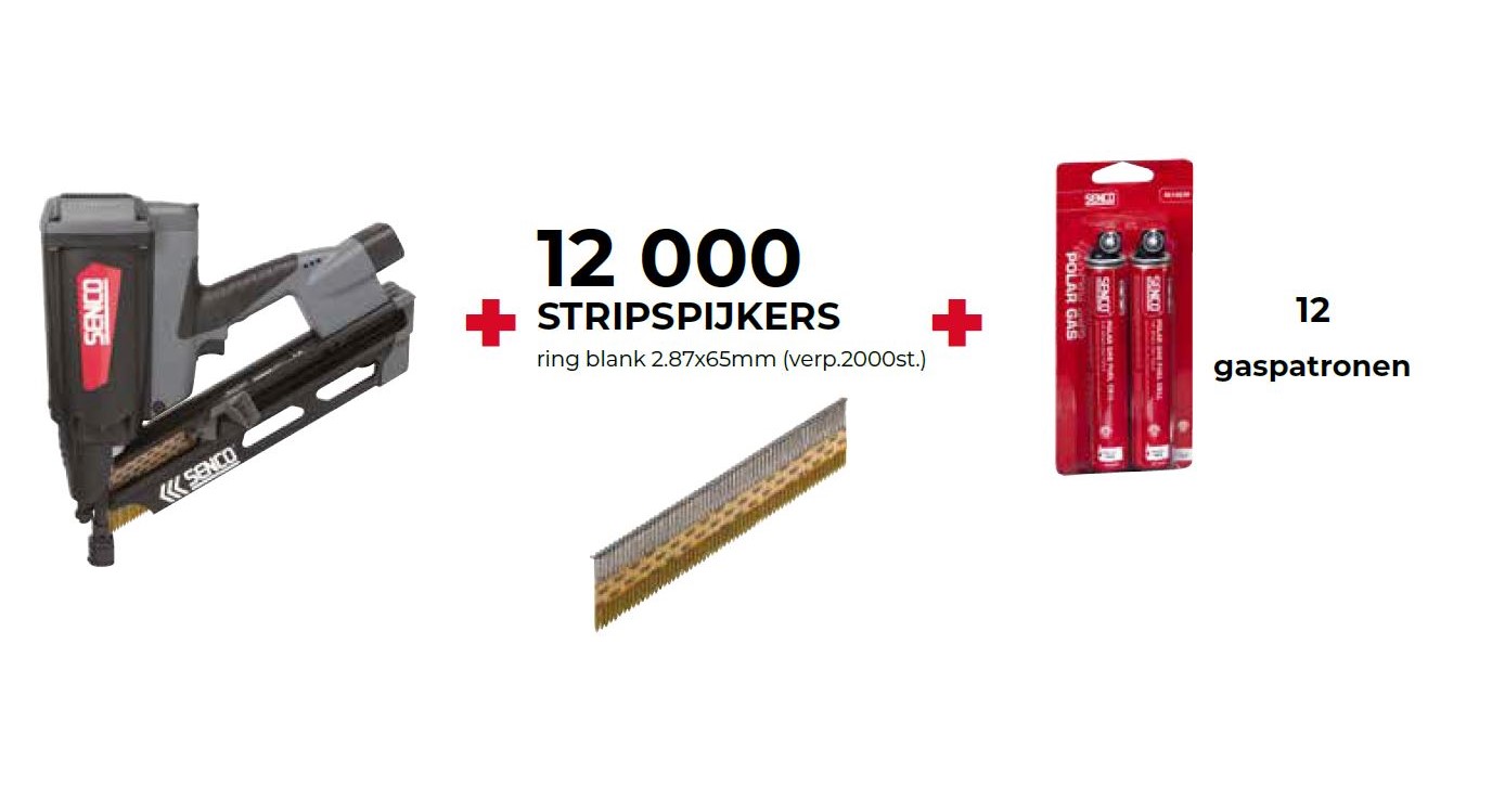 Senco SGT90I Gastacker 50-90 mm + 12000 stripspijkers 2,9x65mm ring blank